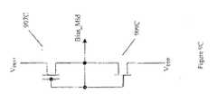 - Other attempts have included increasing the complexity of the CMOS fabrication process so there are multiple sets of devices where each set meets different voltage requirements. Each set of devices requires a different gate-oxide. Each additional gate-oxide requires a separate mask. The resulting hybrid process may significantly increase the manufacturing costs of the IC. EP 0 902 517-  discloses an I/O circuit (100) the output of which receives a voltage V PAD-  which is temporarily higher than a critical voltage VDS MAX > V DS1-  across drain and source of a conducting first N-FET (110, N1) acting as a pull-down device. The first N-FET is protected against hot-electron induced degradation by a serially coupled second NFET (113, N3). A variable drain-source voltage V DS3-  is added to V DS1- . A comparator (150) compares the received voltage V PAD-  to a supply voltage V cc-  and pulls a gate (G) of the second N-FET (N3) to V PAD-  br to V CC- . The conductivity of the second N-FET (N3) is thereby changed so that V PAD-  is distributed among V DS1-  and V DS3- . The comparator (150) conveniently comprises two P-FETs (P1, P2, 160, 170). EP 0 327 159-  discloses a sub-circuit of a logic circuit which is provided with an additional transistor which is connected in cascode therewith in order to protect further transistors of the sub-circuit against hot carrier stress and hot carrier degradation. In a logic circuit comprising transistors of a first conductivity type, an additional transistor (TB2) of the second conductivity type is arranged in cascode. This additional transistor is connected as a diode or as a current source in dependence on an output voltage (Vo) of the circuit. :Further aspects of the invention concern the switching means for switching the additional transistor (TB2) and the location where the additional transistor (TB2) is to be inserted.