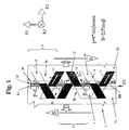 Die Fig. 4 zeigt eine Anordnung 20 aus mehreren erfindungsgemäßen Struktur-Gelenken 31 und 32, die auch als ein einzelnes erfindungsgemäßes Gelenk angesehen werden können, wobei verdeckte Linien gestrichelt und sichtbare Bereiche der Bänder grau gezeichnet sind. Die Gelenke 31 und 32 weisen Bänder 33 bzw. 33a, 33b auf, die in einem Winkel β relativ zur Quer-Richtung R2 der Bauteile T1, T2 oder zur Senkrechten auf die Achsen-Richtung R1 angeordnet sind, wobei der Winkel β in der Ausführungsform der Fig. 4 ungleich 0 Grad ist. Weiterhin weisen die Gelenke 31 und 32 jeweils drei Bänder 34 bzw. 34a, 34b, 34c auf, die in der Richtung R2 verlaufen (Winkel β gleich 0). In Richtung R2 gesehen sind neben den Bändern 34 Druck-Elemente 15 mit jeweils zwei Auflage-Elementen 16, 17 angeordnet. Die einander zugewandten Oberflächen der Auflage-Elemente 16, 17 bzw. die entsprechenden Oberflächen der Druck-Elemente 15 weisen größere Krümmungs-Radien auf, als die einander zugewandten Oberflächen der Bauteile T1, T2. Dadurch wird die an den Druck-Elementen oder den Auflage-Elementen auftretenden Druck-Spannungen verringert. Die neben den Druck-Elementen liegenden Bänder 33 ohne die Verwendung von Auflage-Elementen dienen im wesentlichen zur Aufrechterhaltung einer Andrückkraft in den Querrichtungen R2 der Bauteile an die Druck-Elemente 15. In den Bereichen, in denen die Bänder 34 in nachbarlichem Zusammenhang mit Druck-Elementen 15 stehen, dienen auch die Bänder 34 durch ihre entsprechende Vorspannung zusätzlich der Fixierung eines vorgegebenen maximalen Abstandes zwischen den Bauteilen.Fig. 4 shows an