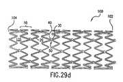 - In the representative embodiment ofFig. 1, thestrut members 20 of eachannular element 10 are interconnected withadjacent strut members 20 to form a continuous closed ring, such as depicted more clearly inFigs. 29e and30e. As previously noted, however, each annular element can define an open ring to form a rolled sheet or open tubular type structure as described further with regard toFig. 3, or can define adjacent turns of a continuous helical pattern as described with regard toFig. 25, for purpose of illustration.