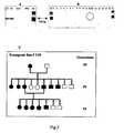 - transgenes are transmitted to subsequent generations of animals according to Mendelian laws forming a transgenic lineage (see Example 4)