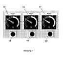 Die (virtuellen) Signalleuchten zeigen an, in welchem der Räume 15, 16, 17 gerade die Temperatur entsprechend eines Temperaturprofils geregelt wird.The (virtual) signal lights indicate in which of the