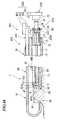 - As shown inFIG. 9, a housingdistal end portion 82 is provided at a distal end of theslide receiving portion 78. Anouter sheath 83 and twoouter sheaths 84 that are arranged in parallel with each other are inserted into the housingdistal end portion 82. Theouter sheath 83 is fixed to the housingdistal end portion 82 such that an aperture at a base end of theouter sheath 83 is continuous with theslide receiving portion 78. The twoouter sheaths 84 are drawn out below the housingdistal end portion 82, and are each fixed so as to cover the respective throughholes 72 of thehousing portion 70.