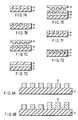 FIG. 2C shows a final stage of the imprintprocess. As shown in this figure, the state of theright region is not different from that of FIG. 2B.In the left region, however, the projections are pushedfurther into the resist from the state shown inFIG. 2B, increasing the imprint depth. As a result,distortion is produced in the intermediate regionbetween the right and the left regions of theimprintstamper 20. At this stage, even in the left region,the recesses of theimprint stamper 20 are completelyfilled with a part of the resist pushed aside.Therefore, if a further pressure is applied to theimprint stamper 20, the projections can no longerbe pushed into the resist in any of the regions.Thus, at the point where the imprint depth can nolonger be increased, the imprint process is finished.