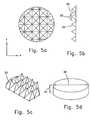 - Figure 5 illustrates a preferred embodiment of a net of the present invention in front (5a), side (5b) and partially sectioned perspective (5c) views;Figure 5d schematically illustrates a cell construct for use with the present invention in perspective view;Figure 5e schematically illustrates two cell constructs situated in between two nets, wherein the nets are shown with substantial thickness.