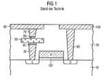 Nachteilig sind jedoch bei derartigen Speicherelementen die sehr hohen Programmierströme, welche für die Änderung des Phasenzustandes erforderlich sind. Insbesondere in Halbleiterschaltungen mit sehr hohen Integrationsdichten sind derartige Ströme jedoch stark begrenzt, wobei z.B. bei Gatelängen von ca. 100 nm und einem verwendeten Gatedielektrikum, welches einer Spannung von 3 V widersteht, maximale Ströme von 100 bis 200 µA zur Verfügung stehen. Dadurch ergeben sich Kontaktflächen zum Phasen-Wechsel-Material von maximal 20 nm x 20 nm, welche weit unterhalb von lithographisch realisierbaren Strukturen liegen.The disadvantage, however, in such memory elements, the very high programming currents, which are required for the change of the phase state. However, especially in semiconductor circuits with very high integration densities, such currents are severely limited, e.g. With gate lengths of about 100 nm and a gate dielectric used, which withstands a voltage of 3 V, maximum currents of 100 to 200 μA are available. This results in contact surfaces for the phase change material of a maximum of 20 nm x 20 nm, which are far below lithographically realizable structures.
