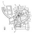 Der Therapie-C-Bogen 8 ist an seiner radial außen liegenden Seite 42 an einer Führung 44 gelagert. In der Führung 44 ist hierzu ein dem Lager 18 entsprechendes, nicht sichtbares Lager 46 vorhanden, an dem der Therapie-C-Bogen 8 in Richtung des Pfeils 48 orbital verfahrbar ist. Mit ihrem Ende 50 ist die Führung 44 am Lagerbock 52 eines Grundkörpers 54 gelagert. Hierbei ist ein nicht sichtbares Gelenk 56 zwischen Lagerbock 52 und Führung 44 angeordnet, welches eine Drehung um eine zur Längsachse 22 parallele Achse 58 erlaubt.The therapy C-