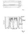 Eine weitere Möglichkeit besteht darin, höhere Ordnungen eines periodischen Stapels dielektrischer Schichten zu nutzen. Da bei einer λ/4-Anordnung diese höheren Ordnungen jeweils bei der halben Wellenlänge der nächstniedrigen Ordnung liegen, könnte so innerhalb des sichtbaren Spektralbereichs kaum eine Überlagerung mehrer Banden erreicht werden. Werden jedoch für die längste zu überlagernde Wellenlänge bereits Vielfache von λ/4-Schichtdicken verwendet, so können von einem Stapel dielektrischer Schichten mit einheitlichen Schichtdicken mehrere Spektralbereiche innerhalb des sichtbaren Lichts überlagert werden.Another possibility is to use higher orders of a periodic stack of dielectric layers. Since, with a λ / 4 arrangement, these higher orders each lie at half the wavelength of the next lower order, it would hardly be possible to achieve superimposition of several bands within the visible spectral range. However, if multiples of λ / 4 layer thicknesses are already used for the longest wavelength to be superimposed, a plurality of spectral regions within the visible light can be superposed by a stack of dielectric layers with uniform layer thicknesses.