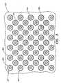 - FIG. 3 is a top plan view of a portion of thetransfer substrate 103 ofFIG. 1 illustrating a second exemplary layout for the plurality of theelectrodes 105 of thetransfer substrate 103. The second exemplary layout ofFIG. 3 is similar to the first exemplary layout ofFIG. 2, but employs a tighter electrode packing density. For example, in the second exemplary layout ofFIG. 3, the pitch between diagonal electrodes is less than the pitch betweencolumns 203 orrows 207 of electrodes. Other electrode arrangements may be employed.