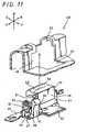 - Further, a component-to-be-loaded of the present invention is one having a component-to-be-loaded side terminal for joining with a main body side terminal of a main body side apparatus having flat plate-like contact portions with the above-mentioned component-to-be-loaded side terminal having two contact pieces opposed to each other, and furthermore, the above-mentioned main body side terminal and the component-to-be-loaded side terminal are capable of being joined with each other from at least two directions as to the plane direction of the above-mentioned contact portion, so that the above-mentioned two contact pieces sandwich the above-mentioned contact portion at the time of the main body side terminal and the component-to-be-loaded side terminal being joined with each other.