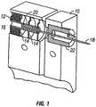 - The optical encoder flag 206 interacts with various optical beams generated by LEDs disposed on or in the positionsensor body portions 108 and 109 in a predetermined manner. The interaction of the optical beams generated by the LEDs of theposition sensor 91 generates a signal that indicates the longitudinal position of the optical flag 206 relative to theposition sensor 91 with a substantially high degree of resolution. The resolution of theposition sensor 91 may be about 200 to about 400 cycles per inch, specifically, about 350 to about 370 cycles per inch. Theposition sensor 91 may have a speed response time (position/time resolution) of 0 to about 120,000 Hz, where one dark and light stripe of the flag constitutes one Hertz, or cycle per second. The position of the optical encoder flag 206 relative to themagnetic member 102,driver coil pack 88 andposition sensor 91 is such that theoptical encoder 91 can provide precise positional information about the penetratingmember 83 over the entire length of the penetrating member's power stroke.