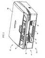 - As shown inFigs. 2 and3, the sheet-supply tray 20 has an inclined sheet-separate plate 22 provided in a downstream-side end portion thereof with respect to a sheet-supply direction in which each recording sheet is supplied from thetray 20. The inclined sheet-separate plate 22 is for separating each of the recording sheets stacked on the sheet-supply tray 20, from the other recording sheets, and guiding a movement of the each separated recording sheet in an upward direction toward a sheet-supply path 23. As shown inFig. 3, the sheet-supply path 23 first extends upward, then curves toward the front side (i.e., left side in the figure) of theMFD 10, and further extends to thefront opening 13. That is, the sheet-supply path 23 extends from the rear side of theMFD 10 toward the front side thereof via theimage recording portion 24 and the sheet-discharge tray 21. Thus, the sheet-supply path 23 includes a U-turn portion through which the direction of supplying of each recording sheet is changed from the rearward direction to the frontward direction before the each recording sheet is supplied to theimage recording portion 24. After theimage recording portion 24 records the image on the each recording sheet, the each sheet is discharged onto the sheet-discharge tray 21.