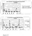 - Immunology results are shown inFigures 6 ,7, and18. IL-2 levels were measured following each injection. The results inFigure 6 show a rapid rise and decline in the first cycle, as seen in previous experiments, followed by lower peaks in each of the five successive cycles. The current results confirm ability of the mixture of polypeptides of the invention to elicit a stronger T-cell response than GA. The results also confirm the ability of monthly treatment to boost the immune response, albeit at a level about half of the initial response. This response seems to be sufficient to maintain a neuroprotective effect. Bi-monthly injections of the mixture of polypeptides of the invention show the ability to boost the immune response following each injection, though at progressively lower levels (Figure 7).Figure 18 shows the TH1-TH-2 shift after several injections, showing a decrease in IFN-γ response and a stable if not rising IL-10 response.