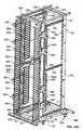 - Referring toFigs. 14A,15A, and15B, in this example multiple left handcable management units 800 and right handcable management units 805, which are mirror images of each other, can be mounted to front and back sidewalls 165, 166 of front vertical frame rails 105A, 105B and back vertical frame rails 110A, 110B. As used herein, thefront sidewalls 165 of front and back vertical frames rails 105A, 105B, 110A, and 110B are the sidewalls having outer surfaces that face outward frombase frame 100 and are directly accessible from the outside ofbase frame 100. The back sidewalls 166 of front and back vertical frame rails 105A, 105B, 110A, and 110B are the sidewalls having outer surfaces that are opposite the surfaces of the front sidewalls, face inward towards the inside ofbase frame 100, and are generally accessible from the inside or sides ofbase frame 100. For convenience,Fig. 14A shows left and right handcable management units 800, 805 mounted only to the front and back sidewalls 165, 166 of front vertical frame rails 105A and 105B.