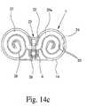 Die Kapselkammern 4 bzw. Führungselemente 21 können je nach Bedarf beispielsweise schneckenförmig, mäanderförmig, konzentrisch, mehrreihig oder in sonstiger geeigneter Weise geführt bzw. angeordnet und ggf. auch gegenläufig bewegbar sein.The