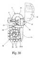 Das Weiterbewegen der Kapselkammern 4 bzw. Führungselemente 21 entlang der Führung 20 erfolgt vorzugsweise durch Betätigen, insbesondere Drehen des Mundstücks 10, vorzugsweise um die Inhalationsrichtung bzw. Inhalationsachse, also um eine in der Zeichnungsebene von Fig. 13 von unten nach oben verlaufende Achse. Jedoch kann das Weiterfördern der Kapselkammern 4 bzw. Führungselemente 21 alternativ oder zusätzlich auch beispielsweise durch Schwenken oder Klappen des Mundstücks 10 und/oder einer zugeordneten, nicht dargestellten Abdeckung des Mundstücks 10 um eine sonstige Achse bewirkt werden. Ein entsprechender Mechanismus ist nicht dargestellt, für den Fachmann jedoch ohne weiteres realisierbar. Alternativ oder zusätzlich kann auch ein separates Betätigungselement, insbesondere zum Weiterbefördern der Kapselkammern 4 bzw. der Führungselemente 21, vorgesehen sein.The further movement of the