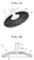- Thesuction cup body 12 includes a gel. As shown in FIGS. 1A and 1B, thesuction cup body 12 is plate-like in shape, specifically, circular disk-like in shape in this embodiment, and its surface on one side in the thickness direction is aconcave suction surface 18 and its surface on the other side is aconvex back surface 20.