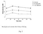 - We have studied the effects of Arg34, Lys26 (N-ε-(γ-Glu(N-α-hexadecanoyl)))-GLP-1 (7-37) therapy during a period of time when the animals would normally progress from having impaired glucose tolerance to having overt Type 2 diabetes. Three groups of male ZDF rats (Genetic Models Inc, Indianapolis, Indiana, USA) were studied and dosed subcutaneously bi-daily with either vehicle (group A), 30 (group B) or 150 µg/kg (group C) of Arg34, Lys26(N-ε-(γ-Glu(N-α-hexadecanoyl)))-GLP-1(7-37), n=6 per group. Animals were between 7 and 8 weeks old when dosing was initiated, and fed glucose levels were not different between the groups before dosing began. However, they were elevated compared to a group of non-diabetic Sprague-Dawley rats who had fed glucose levels significantly below the ZDF animals (6.4±0.6 vs 5.8±0.8, mean±SD, p<0.02). This demonstrates the relative impaired glucose tolerant state of the ZDF animals when the study began. After 10 days of dosing, group C had blood glucose levels during a normal 24-hour feeding schedule that were unchanged compared to the initial measurements and they were significantly lower than the vehicle- and low-dose-treated animals who were hyperglycemic (Fig 1, p<0.0002 by ANOVA, total area under the curve used as summary measure). After 36 days of dosing, an oral glucose tolerance test was performed in the animals after an 11-hour fast. One g/kg of glucose was administered by oral gavage and subsequent measurements of blood glucose and plasma insulin were made. Also in this test, the glycemic level was significantly lower in group C compared to groups A and B (Fig 2 upper panel, p<0.0002 by ANOVA, total area under the curve used as summary measure. These results demonstrate that treatment with Arg34, Lys26(N-ε-(γ-Glu(N-α-hexadecanoyl)))-GLP-1(7-37) can prevent or delay the progression of impaired glucose tolerance to Type 2 diabetes.