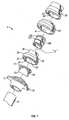 - Referring initially toFIG. 1, the dual seal system ofcannula assembly 1 in accordance with the principals of the present disclosure is illustrated. The dual seal system includeswinepress seal assembly 100 which is adapted to form a seal about a surgical object.Cannula assembly 1 includes abottom housing 10 which is configured to mount or accept acannula 12 on its distal side. Thecannula 12 is intended to be partially inserted into a body cavity through a small incision in the skin to provide access to the body cavity.Bottom housing 10 includes diametricallyopposed extensions 11 which provide a surface for an operator to grip thecannula assembly 1 with two fingers. An interior ledge withinbottom housing 10 supports flange 21 onduckbill valve 20.Duckbill valve 20 is an elastomeric member with a pair of distally extending substantiallyflat lips 23 which are normally biased together to create a substantial fluid-tight seal through the cannula in the absence of an instrument.Lips 23 may be easily separated upon the insertion of an instrument from the proximal side.