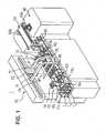 [Microplate pickup device]- Next, the micro pickup device for taking up the microplate 95 from the feeding and collectingportion 40 and placing it on the receiving/delivery table R1 or for taking up the microplate 95 from the receiving/delivery table R1 and containing it in thecassette 80 of the feeding and collectingportion 40 will be described. An entire appearance of such a pickup device is shown as thefirst pickup device 50 inFig. 1, and its interval mechanism is shown inFig. 2. UsingFigs. 13 and14, the internal structure and its function of thefirst pickup device 50 will be described in detail.Fig. 13 is a partially cut-away perspective view illustrating the internal structure of thefirst pickup device 50 andFig. 14 is a side view schematically showing a sandwiched state of themicroplate 95 by thefirst pickup device 50.