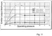 - The diagram offigure 11 shows the trend of the flow rate as a function of the pressure for three different emitter adjustments. In this case it can be noted that for three different values of the flow rate, the emitter performs a self compensation as the pressure increases, while keeping the flow rate constant at the predetermined value.
