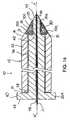 - In this preferred embodiment of tampapparatus 10,distal end portion 16 ofcannula 12 anddistal end portion 38 ofstylet 26A approximately form a truncated cone.Distal end portion 16 has an outside diameter that has a distally directed decreasing taper.Distal end portion 16 defines opening 25 ofaperture 23. In this first position of tampapparatus 10,distal end portion 38 ofstylet 26A extends beyond opening 25 in the distal direction.Distal end portion 38 is also preferably a truncated cone with an outside diameter that has a distally directed decreasing taper.Terminal end 42 ofstylet 26A definessecond opening 52 ofaperture 48.