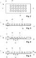 - FIGS. 6 and 7 show, in a sectioned depiction, an exemplifying embodiment of anapparatus 2 according to the present invention that comprisesfirst element 24,layer 28, andsecond element 29. These components are put together in such a way thatsecond side 27 offirst element 24 is arranged adjacent tofirst side 31 ofsecond element 29.Layer 28 is arranged betweensecond side 27 offirst element 24 andfirst side 31 ofsecond element 29.Layer 28 on the one hand seals offopenings 25 offirst element 24 with respect tosecond element 29. On the other hand, layer 28 seals offopenings 30 ofsecond element 29 with respect tofirst element 24. Merely for clarity of depiction, a small interstice is provided betweenfirst side 31 of the second element andlayer 28, but in an actually assembledapparatus 2 it is not present or is filled with corresponding adhesive.First element 24 is oriented with respect tosecond element 29 in such a way thatopenings 25 offirst element 24 align withopenings 30 ofsecond element 29. A respectivebiological specimen 36 is introduced into three of theopenings 25 and adheres respectively to layer 28.Openings 25 offirst element 24 are covered with respect to the external environment by acovering 37.
