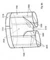 - The parallel treatment unit can be a conventional rotating essentially cylindrical drum, also referred to as a turret, and schematically depicted inFig. 2A. The turret rotates around its longitudinal centre axis, and direction of rotation corresponds to the overall web transport direction, such that a web may be supplied to the turret tangentially, may be affixed to the outer surface of the cylindrical drum, and may after treatment and forming of the article be expelled from the turret about radially outwardly.
