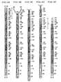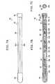 In another method, when high elasticity is imparted to theinner cylinder 104 and theouter cylinder 106, and thecase 102 is deformed to a sufficient degree by pressing thebar members 108, thereby closing theskirt portions 38 of the connection rings 14A through 14E, and when thesheath 16 can be inserted into theinner cylinder 104, thesheath 16 may be caused to enter the gap between theinner cylinder 104 and theclips 12A through 12E and the connection rings 14A through 14E, with thecase 102 being pressed by thebar members 108, thereby loading the clips into thesheath 16.