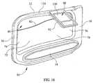 - According to this disclosure, siderail 22 of thepatient support apparatus 10 also has acaregiver control unit 90. In some embodiments such as the one shown inFigs. 1-7,15 and16,unit 90 is coupled totop rail portion 32 and hangs downwardly therefrom. In other embodiments, such as the one shown inFigs. 11-14,unit 90 projects upwardly frombottom rail portion 34. In each of these embodiments, theflexible panel 72 is configured to bow away from thecaregiver control unit 90 and toward thepatient support deck 14 andmattress 16.