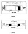 - Figure 9. Stiffness (9A), Ultimate Tensile Load (9B) and % Elongation (9C) of samples at 2 and 12 weeks.