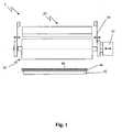 Es sollte dem Fachmann jedoch klar sein, das die Erfindung ebenso gut geeignet ist, um nur das imprägnierte Papier zu bestreuen, das dann bspw. auf geeigneten Rollgängen unter der Vorrichtung durchgeführt wird. Mit anderen Worten: die Vorrichtung ist dazu geeignet Imprägnate zu bestreuen, bevor diese bspw. zu Laminaten weiter verarbeitet werden.However, it should be clear to those skilled in the art that the invention is equally well suited to sprinkle only the impregnated paper, which then, for example, on suitable roller under the device is performed. In other words, the device is suitable for sprinkling impregnates before they are further processed into laminates, for example.