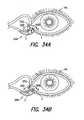 - As shown inFIGS.34A-34B, and discuss below, the graspable orother projection332 can extend laterally in a direction parallel to or away from aneye100 when implanted. This may reduce irritation to theeye100 as compared to a case in which a portion of the projection extends toward theeye100. In addition, a lateral extension direction of theprojection332 from theproximal end308 can be substantially the same as a lateral extension direction of the secondimplant body portion306 relative to thedistal end326 of the firstimplant body portion304, as shown inFIGS.3A-3B, for example. This can also avoid extension toward the eye. Thefirst drug insert322 can partially extend though the region of theprojection332, such as to provide sustained release of a first drug or other therapeutic agent onto an eye.