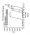 - Figs. 8A &8B represents data generated measuring activity of pegylated glucagon lactam derivatives at the glucagon and GLP-1 receptors.Fig. 8A represents data generated measuring glucagon receptor antagonism of the listed glucagon analogs in the presence of 0.8nM of native glucagon, as measure by cAMP production. More particularly,Fig. 8A compares the inhibition of 0.8nM glucagon-induced cAMP release by glucagon analogs [PLA6, D9, E16K20(L), D28]G(6-29) ▲, [PLA6, D9, E16K20(L), C24(20K PEG), D28]G(6-29) ▼, [PLA6, D9, K12E16(L), C24(20K PEG), D28]G(6-29) ◄, [PLA6, D9, E16K20(L), D28, C35(20K PEG)]G(6-CEX) ►, relative to native glucagon ■.Fig. 7B represents data generated measuring GLP-1-induced cAMP release by glucagon analogs [PLA6, D9, E16K20(L), D28]G(6-29) A, [PLA6, D9, E16K20(L), C24(20K PEG), D28]G(6-29) ▼, [PLA6, D9, K12E16(L), C24(20K PEG), D28]G(6-29) ◄, [PLA6, D9, E16K20(L), D28, C35(20K PEG)]G(6-CEX) ►, relative to native GLP-1 ■. Abbreviations are consistent with those used inFigs 6A &6B.