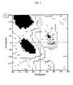 - Figure 1:A) Analysis by means of polyacrylamide in denaturing conditions (SDS-PAGE 12%) and coloring with Coomassie Blue of the result of the purification of the Fab fragment of the αD11 antibody (well 1: sample of αD11 antibody digested proteolytically with papaine; well 2: Fab fragment of the purified and concentrated αD11 antibody; well 3: molecular weights); B) typical crystal of the Fab fragment of the αD11 antibody C) High resolution diffraction spectrum obtained with a crystal of the Fab fragment of the αD11 antibody; D) Ramachandran chart of the torsion angles of the main chain of the heavy and light domains of the Fab fragment of the αD11 antibody.