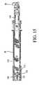 - The staple former 98 is an elongated, channel-shaped member provided withupstanding side flanges 65 extending along its opposite sides. Thestaple holder 96 is an elongated plate-like member that is slidably supported on the staple former 98 and located between theside flanges 65. Thecompression coil spring 106 normally biases thestaple holder 96 distally relative to the staple former 98 with the dependingprong 104 biased againstprong 102 at the distal end of the elongatedcentral slot 100. Thestaple holder 96 and the staple former 98 are inserted into thestaple cartridge 68 between the lowerupstanding flanges 136. The staple former 98 is slidably supported on theledges 138 formed on the inside of theflanges 136. Anejector arm 166 extending from the distal end of thestaple holder 96 has anotch 168 for receiving thecrimp loop 22 of thestaple 12. Apusher finger 170 projects forwardly into thenotch 168 at the distal end of thestaple holder 96 for engaging thecrimp loop 22 of the staple 12 as thestaple holder 96 is advanced to move the staple 12 into engagement with theanvil 94. The distal end of theejector arm 166 is slanted away from and above the level of thepusher finger 170 and serves to disengage the staple 12 from theanvil 94 as thestaple holder 96 is retracted after the staple 12 is formed. A pair offingers 172 at the tip of theejector arm 166 is spaced apart to receive the depending tab 174 of thestaple cartridge housing 32 therebetween.