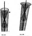 - FIGS. 21B-E show views of a double-conical stent in accordance with some embodiments of the present invention. Referring toFIGS. 21B and 21C, the double-conical stent may include a substantiallycylindrical stent 2108 carrying avalve 2110 as well as two substantially conical stents (21 12, 21 14) affixed/attached to stent 2108 (e.g., with VELCRO<(R)>, suture(s), friction fitting(s), other suitable affixing mechanism(s), or a combination thereof).FIG. 21D shows a cross-section of the double-conical stent shown inFIGS. 21B and 21C. In other embodiments, at least one ofstents 2112 and 21 14 may have a crown-shape with protruding spikes formed from open or closed cells or Z-stents. The first and second additional stents (21 12, 21 14) may collectively form a fixation element 21 16 (FIG. 21C; e.g., annular groove) similar tofixation element 202 shown inFIG. 2A.Fixation element 2116 may allow for fixation, for example, in an orifice of a failed valve which is of similar size as thestent 2108 carrying valve component 21 10 or to an anchoring stent with a complimentary annular projection. In some embodiments,stents 2112 and 21 14 (and optionally stent 2108) may be replaced with a single stent in a double-conical configuration (e.g., the two cones connected by a continuous region in the area of fixation element 21 16). An advantage to using separate stent(s) for the cones/fixation element is that the mechanical stresses of the cones/fixation element (e.g., first and second stents 21 12 and 21 14) can be at least partially separated fromstent 2108 containing the valve. In some embodiments, at least the additional stent or portion thereof positioned closer to the tip of the delivery system (e.g., stent 21 12) may be recapturable by the delivery system. To facilitate such recapturing, the additional stent may be formed in a pyramid or wing cross-sectional configuration 21 18 (FIG. 21E). In some embodiments, the wing(s) or spikes of stent 21 12 (and/or 21 14) may be formed at various positions/heights along a central axis ofstent 2108 similar to, for example, the stent shown inFIG. 7B. Having different positions/heights for at least some of the wings or spikes may facilitate engagement with, for example, native valves of different sizes. In some embodiments, the stents shown inFIGS. 21B-21E (e.g., stent 2108) may include at least one attachment element for removably attaching to a delivery device, similar toattachment elements 808 shown inFIG. 8B.