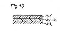 - On an opposing area between theupper film 21 and thelower film 22, agap retaining member 24 having a rectangular frame shape is disposed. Thegap retaining member 24 has such a sticking property that theupper film 21 and thelower film 22 are bonded to each other, and serves as an insulating member used for retaining agap 31 between the opposed surfaces of the upper pressuresensitive ink members 23a and the lower pressuresensitive ink members 23b. Thegap retaining member 24 is prepared as, for example, a double-sided sticky tape having a core material 24A such as a polyethylene terephthalate film, on both of the surfaces of which asticky agent 24B such as an acrylic adhesive paste, is formed, as shown inFig. 10. The thickness of thegap retaining member 24 is set to, for example, 50 µm to 100 µm.