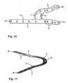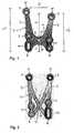 Die Schenkel liegen vor allem für Anwendungen zur Versorgung von Frakturen bevorzugterweise in Form von länglichen Platten vor. Bevorzugt sind die Kanten und Ecken dieser Platten abgerundet. Eine Ausführungsform der Erfindung sieht vor, dass die Schenkel in der Plattenebene wellenförmig ausgebildet sind. Eine weitere Ausführungsform sieht zudem vor, dass die Schenkel zwischen den Bereichen mit den Öffnungen verjüngt sind. Eine alternative Ausführungsform sieht zudem vor, dass die Schenkel zwischen den Bereichen mit den Öffnungen in Form eines Drahtes oder mehrere nebeneinander liegender Drähte vorliegen. Weiter können die Schenkel in Form eines Bandes oder mehrerer nebeneinander liegenden Bänder ausgestaltet sein.The legs are especially in applications for the treatment of fractures, preferably in the form of elongated plates. Preferably, the edges and corners of these plates are rounded. An embodiment of the invention provides that the legs are wave-shaped in the plane of the plate. A further embodiment also provides that the legs are tapered between the areas with the openings. An alternative embodiment also provides that the legs between the areas with the openings in the form of a wire or several adjacent wires. Further, the legs may be configured in the form of a band or a plurality of adjacent bands.