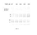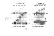 - Reduction followed by removal of reductant does not change the migration of FVIII (lane 1 vs. 2 and 8 vs. 9). Addition of 22kD PEG to PEG2 blocks the binding of the 413 antibody, consistent with specific PEGylation at the 491 position (Figure 4 upper right gel). This also suggests that PEGylated PEG2 will have lower immunogenicity in man because the 413 antibody has been shown to share the same epitope as human A2 inhibitory antibodies (Scandella et al., 1992, Thromb. Haemost. 67, pp. 665-71).