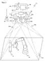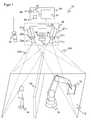 Der 3D-Sensor 20 gibt die dreidimensionalen Bilddaten an die Auswertungseinheit 40 aus. In einer Bewegungsmuster-Erkennungseinheit 41 der Auswertungseinheit 40 wird die Bedienperson 14 innerhalb der dreidimensionalen Bilddaten identifiziert und ihre Position, Bewegungsbahn und Körperhaltung bestimmt. Je nach Anforderung der Anwendung werden Gesten und Posen eher grob nur des gesamten Körpers bis hin zu einer feinen Erkennung einzelner Fingerbewegungen aufgelöst. Möglichkeiten der Erkennung von 3D-Bewegungsmustern sind an sich bekannt und beispielsweise in der einleitend genannten