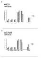 Applicants' Invention Based on TARGET Relationship to Anabolic Stimulation of Chondrocytes- As noted above, the present invention is based on the present inventors' discovery that TARGETS are factors in the up-regulation and/or induction of anabolic processes of chondrocytes. The term "TARGET" or "TARGETS" means the proteins identified in accordance with the assay described below to be involved in the induction of the anabolic stimulation of chondrocytes. The preferred TARGETS are identified as SEQ ID NOS. 101-128 and 401-594 in Table 1A. Table 1A lists the polypeptides, polynucleotides and knock-down target sequences of the present invention. Table 1 B lists exemplary fragments of the transmembrane protein TARGETS. Table 1C lists exemplary KD target sequences useful in the practice of the present expression-inhibitory agent invention. Table 1A| Hit ID | KD Target Sequence | Target Gene Symbol | GenBank Accession | Name | Class | DNA | Protein | KD SEQ NO. |  | H33-025 | CCTGAATGTGACTGTGGAC | DGKB - INCENP | NM_020238 | diacylglycerol kinase, beta 90kDa / inner centromere protein antigens 135/155kDa | Kinase |  | 1 | 101 | 202-209 |  | (SEQ ID NO: 209) | NM_004080 |  | 2 | 102 |  |  |  |  | NM_145695 |  | 3 | 103 |  |  | H33-032 ) 332 | GACTGACTGGCCTGAAGGC | ICK | NM_016513 | intestinal cell (MAK-like)kinase | Kinase |  | 4 | 104 | 210-217 |  | (SEQ ID NO: 210) |  | NM_014920 |  | 5 | 105 |  | H33-034 | GATCTACACCACCTTCATC | GPCR103 | AF411117 | G protein-coupledreceptor 103 | GPCR | 6 | 106 | 218-225 |  | (SEQ ID NO: 219) |  | NM_198179 |  | 7 | 107 |  | H33-041 | GGTGTATGGGCTCATGTAC | FZD1 | NM_003505 | frizzled homolog 1 (Drosophila) | GPCR | 8 | 108 | 226-232 |  | (SEQ ID NO: 226) |  |  |  |  |  |  | H33-056 | AGAACTGGGTGATGACAGC | ELA1 | NM_001971 | elastase | 1,pancreatic | Protease |  | 9 | 109 | 233-240 |  | (SEQ ID NO: 234) |  |  |  |  |  |  | 240 |  | H33-061 . | ATGAACTCTGTGATCCAGC | USP9Y | NM_004654 | ubiquitin specific protease 9, Y-linked (fat facets-like, Drosophila) | Protease | 10 | 110 | 241-248 |  | (SEQ ID NO: 241) |  |  |  |  |  |  | H33-082 | TTGGAATTCCAGTGTACCC | DUSP11 | NM_003584 | dual specificity phosphatase 11 (RNA/RNP complex 1-interacting) | Phosphatase | 11 | 111 | 249-256 |  | (SEQ ID NO: 250) |  |  |  |  |  |  | H33-0383 | GCTAGTTATCGCCTACCTC | DUSP3 | N_004090 | dual specificity phosphatase 3 (vaccinia virus phosphatase VH1-related) | Phosphatase | 12 | 112 | 257-263 |  | (SEQ ID NO: 257) |  |  |  |  |  |  | H33-096 | AGATTCCAGATGCAACCCC | JAK1 | SK185 - MM_002227 | Janus kinase 1 (a protein tyrosine kinase) | Kinase | 13 | 113 | 264-272 |  | (SEQ ID NO: 266) |  |  | 14 | 114 |  | 107 | CTGAACTACTGGTACAGCC | ABCG1 | NM_016818 | ATP-binding cassette, sub-family G (WHITE), member 1 | Transporter | 15 | 115 | 273-280 |  | (SEQ ID NO: 275) |  | NM_004915 |  | 16 | 116 |  |  |  |  | NM_207174 |  | 17 | 117 |  |  |  |  |  | NM_207627 |  | 18 | 118 |  |  |  |  |  | NM_207628 |  | 19 | 119 |  |  |  |  |  | NM_207629 |  | 20 | 120 |  |  |  |  |  | NM_207630 |  | 21 | 121 |  |  | H33-130 | GCGAATTCCACCAGCATTC | SLC26A8 | NM_052961 | solute carrier family 26, member 8 | Transporter | 22 | 122 | 281-293 |  | (SEQ ID |  |  |  |  |  |  | H33-192 | ACATTGACCAGGAAGTGAC | 3GTLA4 | NM_178312 | gamma-glutamyltransferase-like activity 4 | Enzyme | 23 | 123 | 294-300 |  | (SEQ ID NO: 296) |  | NM_178311 |  | 24 | 124 |  |  |  |  | NM_080920 |  | 25 | 125 |  |  | H33-217 | GAAGCTGAATTAGGGCTTC | PDE1A | NM_005019 | phosphodiesterase 1A, calmodulin-dependent | PDE | 26 | 126 | 301-308 |  | (SEQ ID NO: 302) |  | NM_00100-3683 |  | 27 | 127 |  | H33-279 | GAAGCCATCTCCGACAATC | SLC15A2 | NM_ 021082 | solute carrier family 15 (H+/peptide transporter), member 2 | Transporter | 28 | 128 | 309-315 |  | (SEQ ID NO: 310) |  |  |  |  |  |