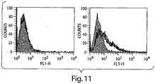 - Fig. 11 demonstrates the binding of antibodies to CHO cells expressing CD137.Fig. 11A provides the results for CHO cells without CD137 (negative control);Fig. 11B provides the results for CHO cells expressing CD137. The solid curve in every plot is for staining with an irrelevant anti-DNP antibody.
