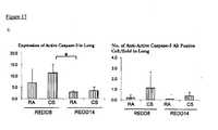 - 7. REDD14-instilled mice are partially protected from cigarette smoking induced apoptosis of lung septal cells as evidenced by lung section staining for activated caspase and by immunoblotting of lung extracts withanti-activated caspase 3 antibodies ((Fig. 17c)