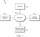 - The sensory input touch device 104 is a touch-screen device capable of receiving an input from a subject. For example, the sensory input touch device 104 may include a capacitive display screen that is capable of sensing one or more contacts that may be transformed into one or more indications of a subject's intent. A touch-screen device may implement a variety of techniques to identify a subject's input. For example, a touch screen may rely on technologies such as a resistive, a capacitive, a surface acoustic wave, infrared, strain gauge, dispersive signal technology, and acoustic pulse recognition. Generally, a touch-screen device is capable of displaying one or more graphical elements in an area that is functional to receive an input, such as a touch. An exemplary touch-screen device 104 may include an IPOD TOUCH available from the Apple Corporation of Cupertino, California. Similarly, an exemplary touch-screen device 104 may include gaming counsels (e.g., PLAYSTATION PORTABLE available from the Sony Computer Entertainment Inc. of Japan)