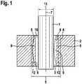 In einem ersten Verfahrensschritt wird auf herkömmliche Weise eine Bohrung 6 in dem Werkstück 2 durch eine spanabhebende Bearbeitung erzeugt. Idealerweise sollte die Bohrung 6 bezüglich einer Sollachse 7 eine zylindermantelförmige Idealkontur 8 aufweisen. Die zerspanende Bearbeitung erfolgt jedoch unter dem Einfluss von Kräften, die in der Praxis die Bohrung 6 mit einer Realkontur 6 erzeugen. Diese Realkontur 6 weist beispielsweise einen Vorsprung 9 auf, der sich als bauchförmige Erhebung zwischen der Realkontur 6 und der Idealkontur 8 ergibt. Eine Längsachse der Bohrung 6 kann hierbei auch von der Sollachse 7 abweichen.In a first method step, a