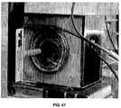 C. Results and Discussion- InFIGS. 48(a), 48(b) and48(c), the experimental signal power is shown as a function of bandwidth compared with the theoretical bandwidth power. Bandwidth usage was calculated by moving a point source down the bore in 200 micron increments and taking a spectrum at each position, ensuring that the phantom passed through the center of the bore. An image of the raw frequency data is shown inFIG. 48(a). The signal summed across all the point source locations is shown inFIG. 48(c). The signal power in decibels is shown inFIG. 48(b).