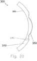 - In operation, in some embodiments thelens300 may be in a first state whereby the firstoptical fluid330 substantially fills the gap between thefirst lens surface310 and the flexible element350 (or a region thereof). In some embodiments,fluid330 may be index matched to the first lens component, as described above, however, it is not so limited and may have any index of refraction. In this first state, in some embodiments the amount of the secondoptical fluid370 between theflexible element350 and thethird lens component320 may be sufficiently low. In some embodiments, in this exemplary first state theflexible element350 or a region thereof may conform to the first surface of the third lens component 320 (e.g. the curvature of the inner Radius of Curvature of thethird lens component320 as shown inFIG. 21), which may provide a desired optical power for the lens300 (e.g. an optical power for distance vision correction).