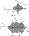- Referring next toFigure 12B, amesh structure 1222b configured in accordance with another embodiment of the technology may have anopening 1294 at thedistal end 44 in addition to theopening 100 at theproximal end 42 to allow maximum blood flow therethrough. In further embodiments, both ends of themesh structure 1222b can be closed and/or tethered to theelongated shaft 16. In this embodiment the mesh may be self expanding. For example, themesh structure 1222b may be made from an elastic or super elastic material such as nitinol or spring temper stainless steel and have an unrestrained configuration comprising an expanded diameter. The self expandingmesh structure 1222b may be deployed by retracting adelivery sheath 91 to remove constraining forces. The self expandingmesh structure 1222b may be compressed by retraction into the delivery sheath facilitated by pulling thewires 104.Wires 104 may further be beneficial by providing a flexible connection between themesh structure 1222b and the distal end of theelongated shaft 16 such that if the distal end of the elongated shaft is eccentrically positioned within the artery, then themesh structure 1222b remains centered in the artery with wall apposition forces substantially evenly displaced over its surface.