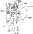 C.Achieving Intravascular Access to the Renal Artery- In accordance with the present technology, neuromodulation of a left and/or right renal plexus RP, which is intimately associated with a left and/or right renal artery, may be achieved through intravascular access. AsFigure 46A shows, blood moved by contractions of the heart is conveyed from the left ventricle of the heart by the aorta. The aorta descends through the thorax and branches into the left and right renal arteries. Below the renal arteries, the aorta bifurcates at the left and right iliac arteries. The left and right iliac arteries descend, respectively, through the left and right legs and join the left and right femoral arteries.