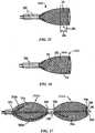 - In other embodiments, the electricallyconductive mesh structure 22 is at least partially insulated. For example, thefibers 58 can be metal wires covered with an electrically insulating material and portions of the insulating material may be stripped away to expose one or moreenergy delivery elements 24. Theenergy delivery elements 24 may be any size, shape, or number, and may be positioned relative to one another as provided herein. For example, one or more circumferential bands may be created along the length of themesh structure 22. The bands may be formed of a desired width by removing a desired amount of insulating material from themesh structure 22. Alternatively, individual sectors or quadrants (on the external and/or internal portions of the mesh structure 22) or selected filaments may have their insulation removed. The insulation can be removed from thefibers 58 in a variety of ways to create the stripped portions that serve as conductiveenergy delivery elements 24. For example, the insulation may be scraped away or ablated, e.g., by a thermal radiation source such as a laser. Further, the energy delivery elements may be formed by masking selected portions of themesh structure 22 that are intended to remain insulated after laser ablation (of the unmasked portions).